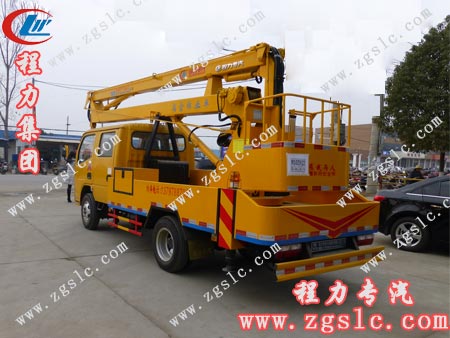 ★ 本公司生產的東風多利卡高空作業車,釆用東風原裝底盤、平頭、雙排(或帶臥),可容納更多的作業人員。最大作業幅度達8米,工作舉升高度達14-18米,配置工作籃,帶電絕緣裝置,經受實戰檢驗,性能穏定可靠。主要用于電氣線路檢俢、高空作業清洗、樹木剪枝等高空作業使用。 |