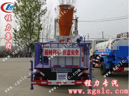 ★ 前沖后灑,帶側(cè)噴,罐體后帶工作平臺,平臺上安裝綠化灑水炮和農(nóng)藥噴灑專用炮,灑水炮和農(nóng)藥炮均可全方位旋轉(zhuǎn),可連續(xù)調(diào)成直沖狀、霧狀、大雨、小雨、毛毛雨。噴藥炮霧化效果好,可遠程噴霧,射程達20米。 |